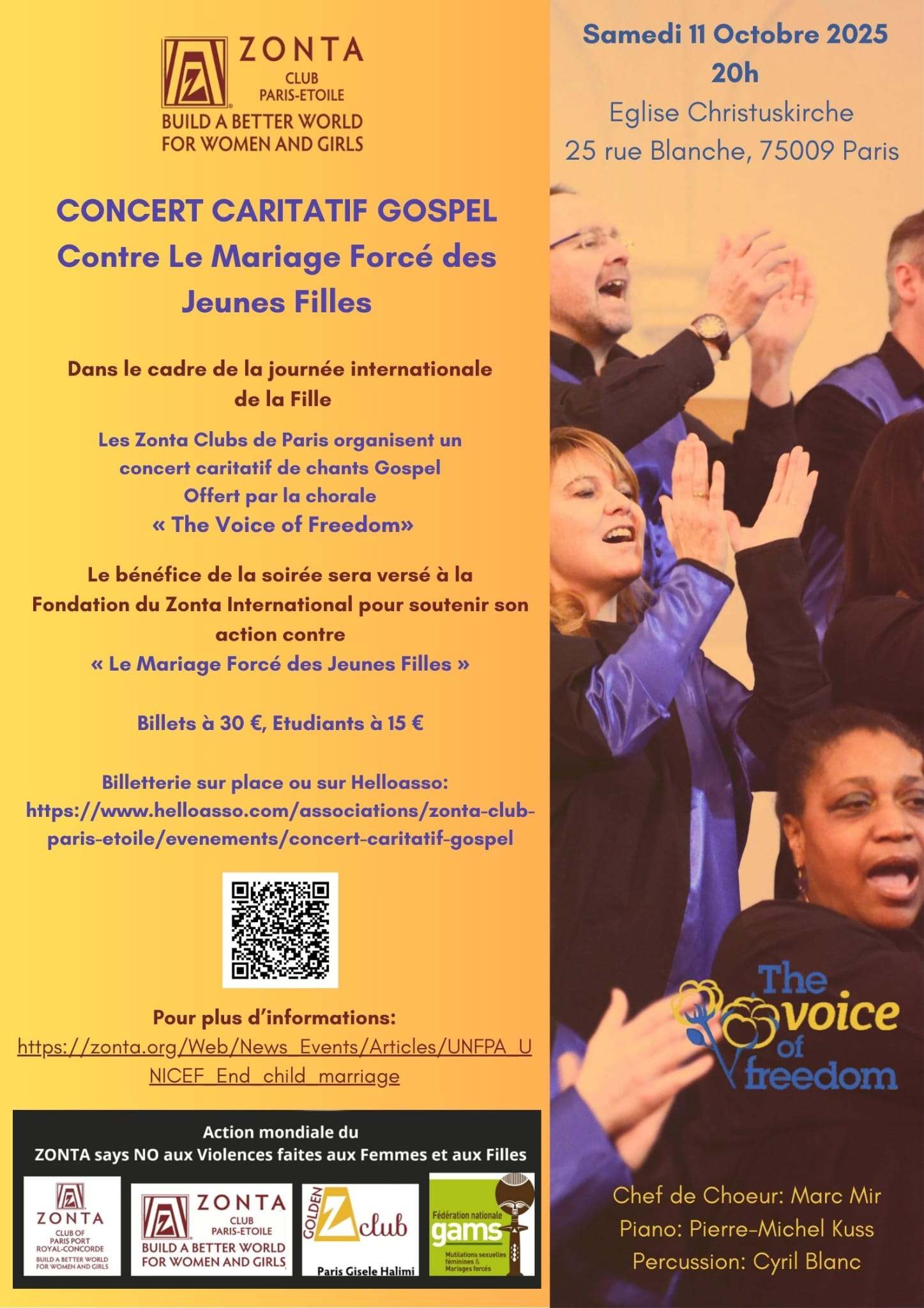 Billets/Tickets: Concert Caritatif Gospel – Zonta Club Paris-Etoile