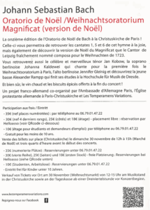 « Alle Veranstaltungen Weihnachtsoratorium Dezember 7 @ 17:00 - 19:00 €10 – €35 « Adventsmarkt Zum Kalender hinzufügen Google Kalender iCalendar Outlook 365 Outlook Live Details Datum: Dezember 7 Zeit: 17:00 - 19:00 Eintritt: €10 – €35 Website: www.lestemperamensvariations.com