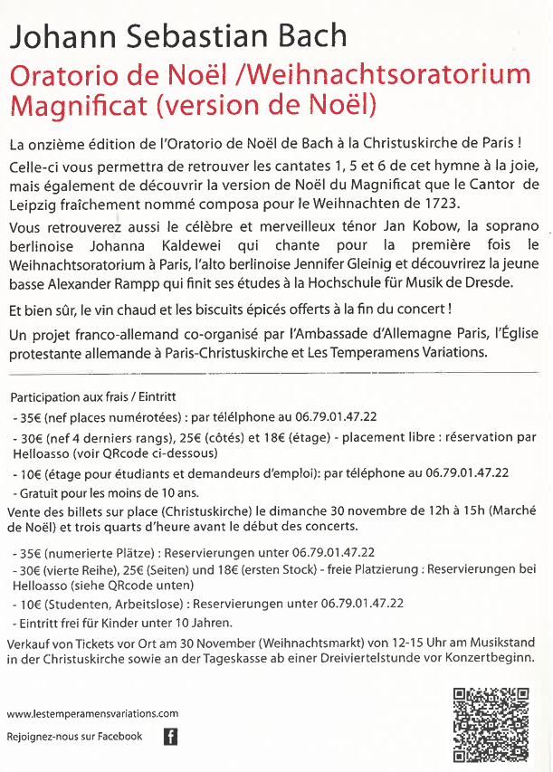 Einmal im Jahr sind Musiker des Conservatoire national superieur de musique et de danse de Paris in der Christuskirche zu Gast, führen im Gottesdienst die zum Sonntag passende Bachkantate auf und geben nach dem Gottesdienst ein einstündiges Konzert, bei dem der Eintritt frei ist.